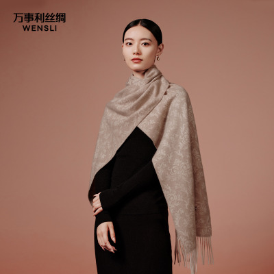 万事利秋冬山羊绒围巾岁岁生花