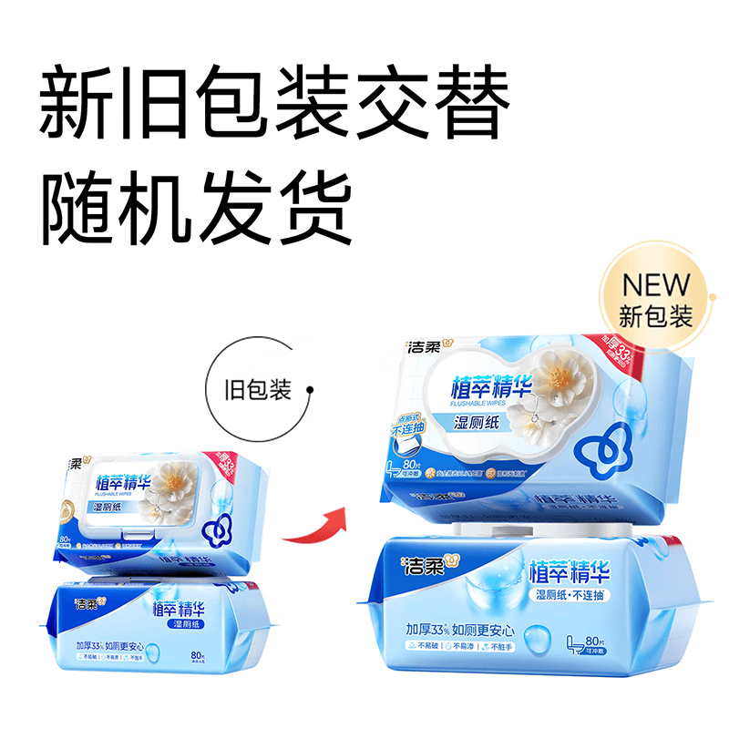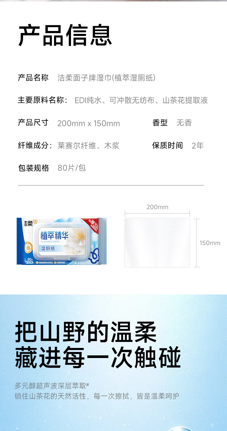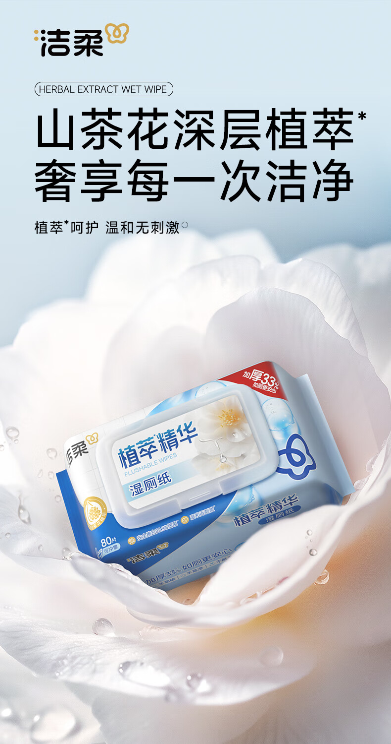 洁柔湿厕纸 便携装80片*1包 山茶花精华加大加厚洁厕湿巾厕纸湿巾纸巾