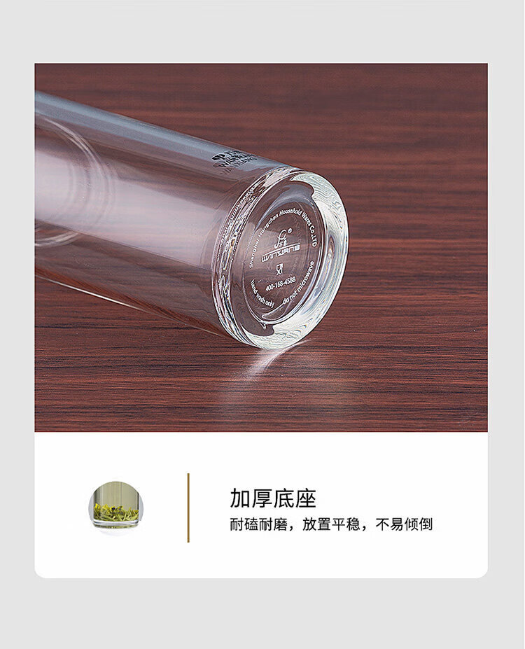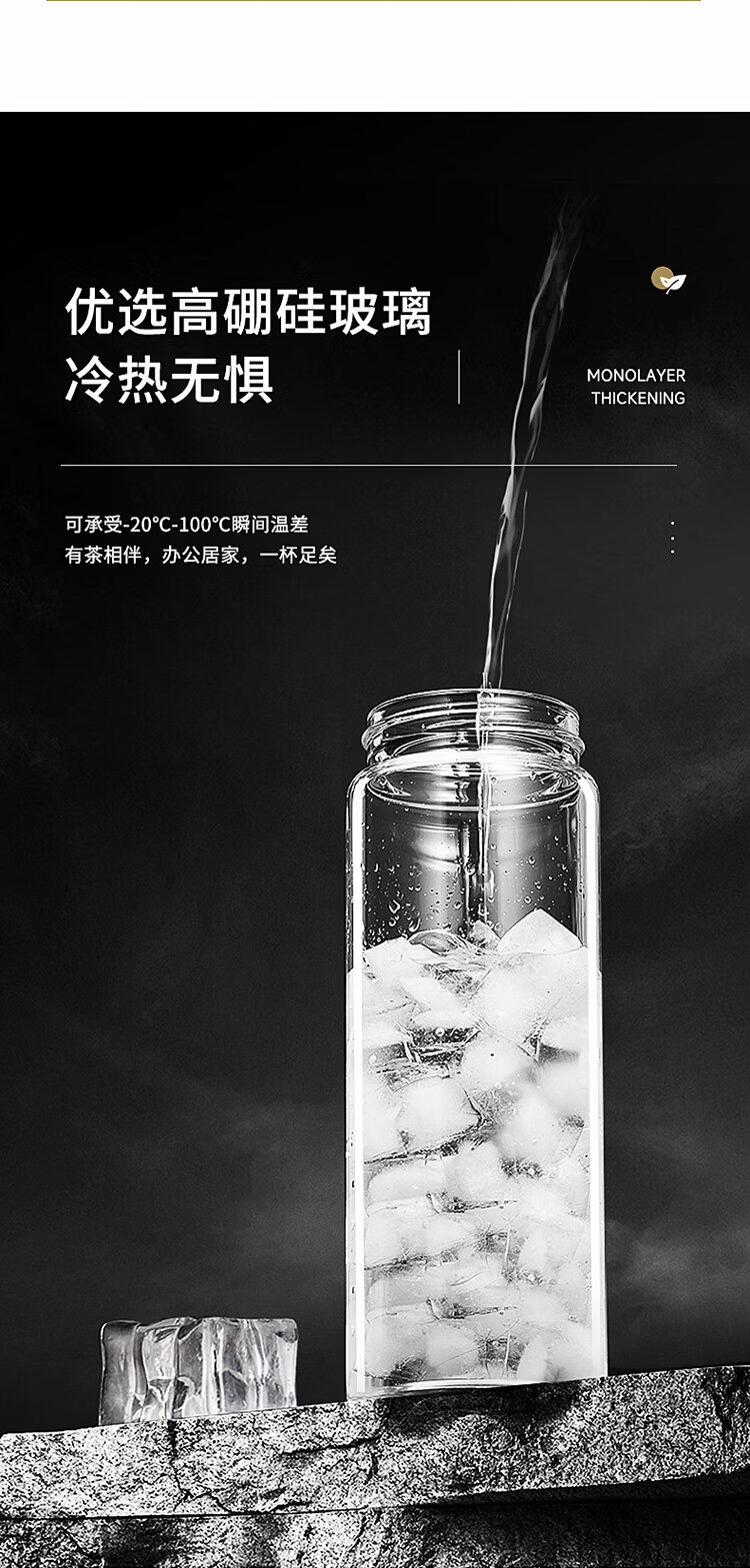 希诺(heenoor)双层玻璃杯男士大容量商务泡茶杯办公室水杯家用喝水便携杯子女 本色270ml XN-L600 双层高硼硅玻璃