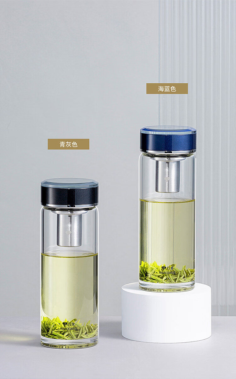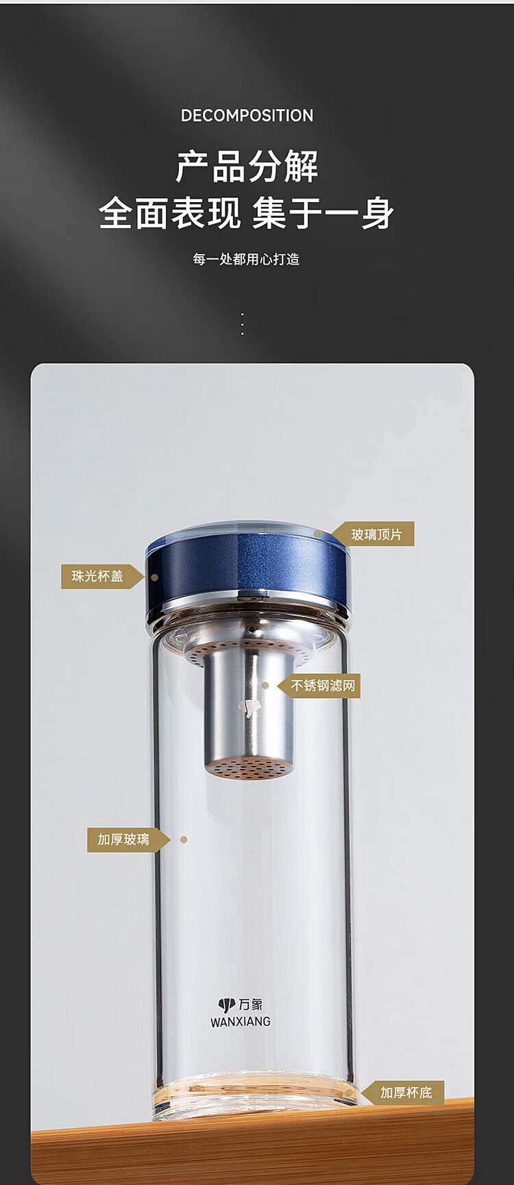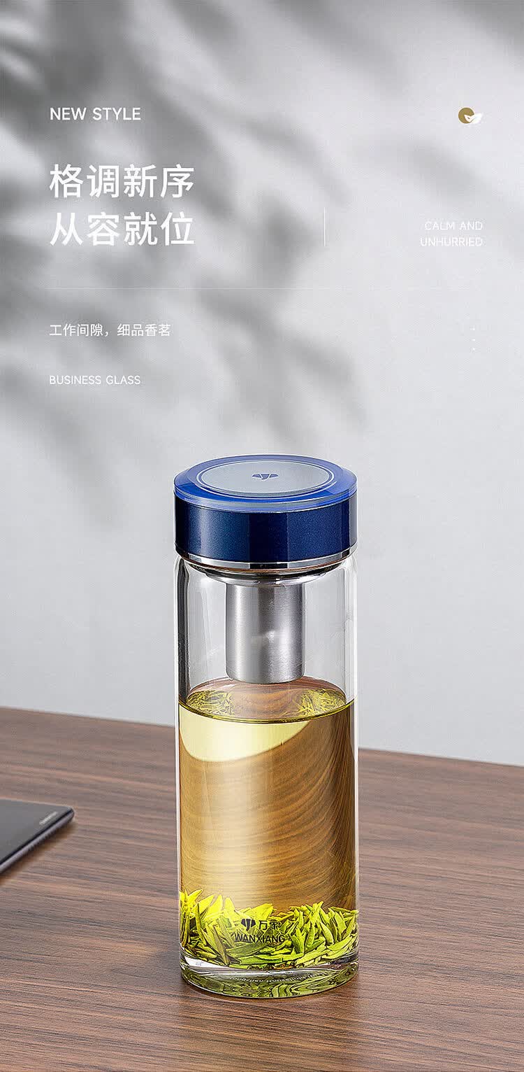 万象(WANXIANG)玻璃杯单层加厚大容量家用透明杯子办公可携式车载轻奢泡茶水杯男 U312L-海蓝色 510ML 带滤网