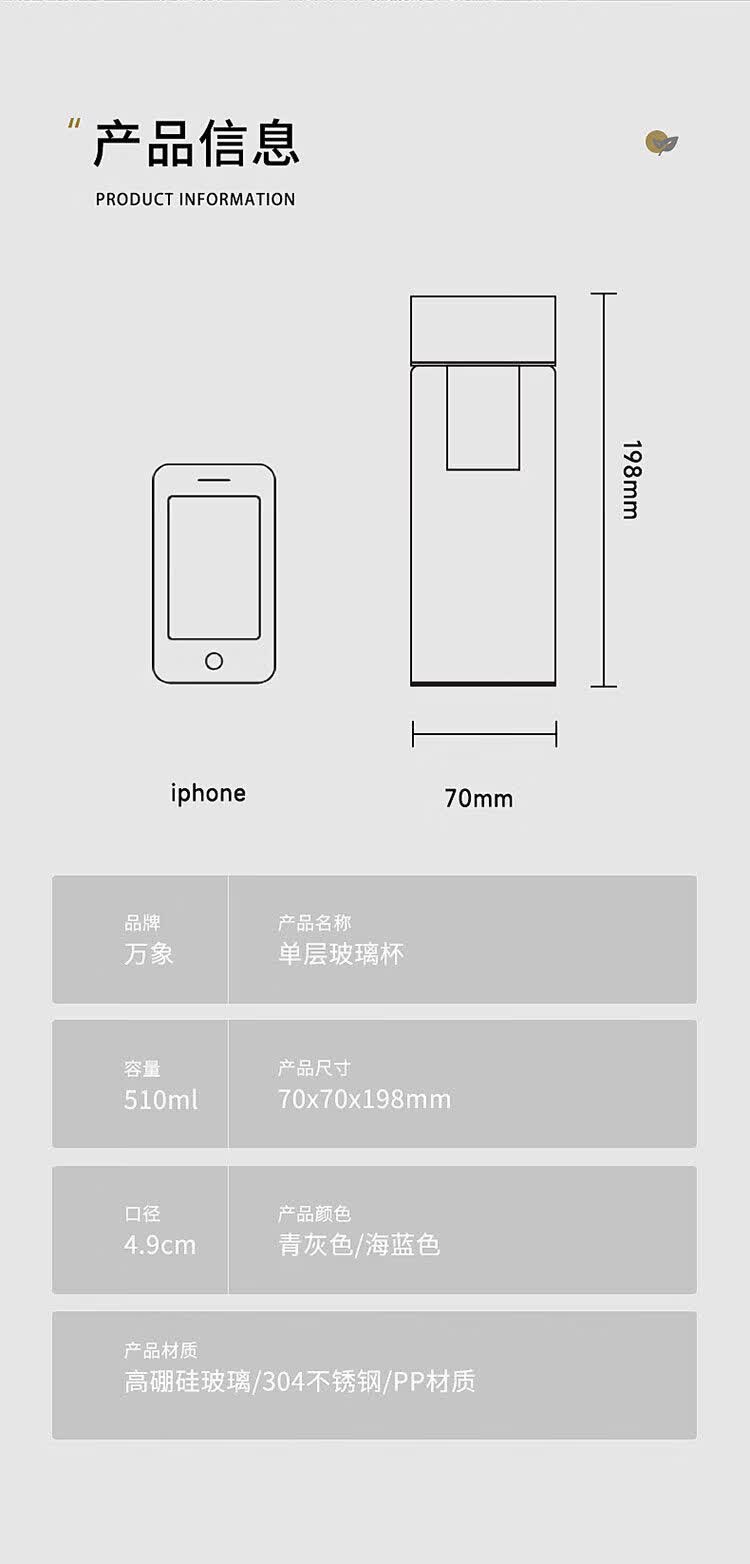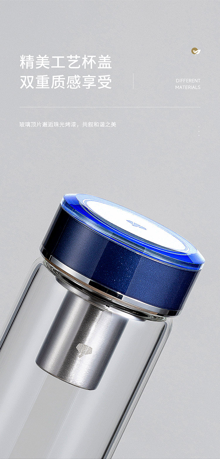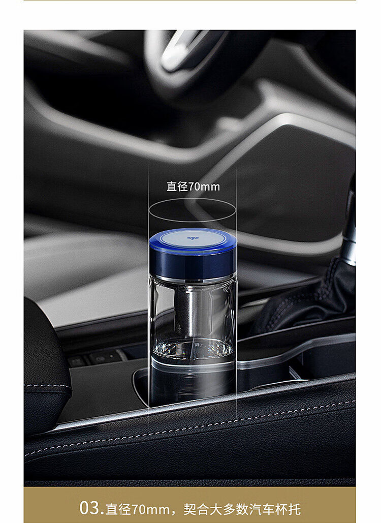 万象(WANXIANG)玻璃杯单层加厚大容量家用透明杯子办公可携式车载轻奢泡茶水杯男 U312L-海蓝色 510ML 带滤网
